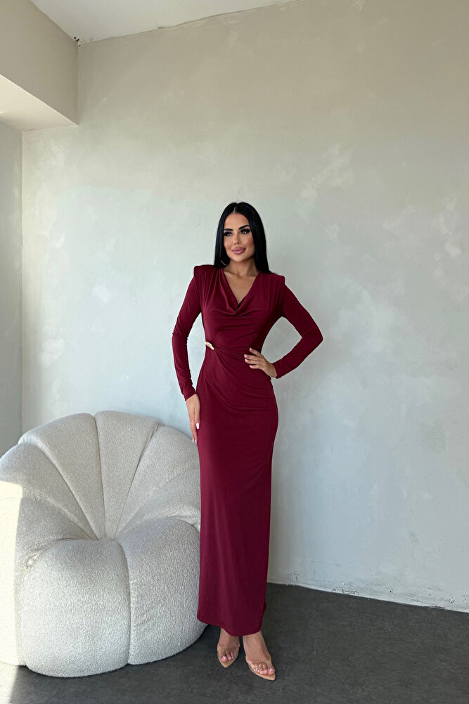 Degaje Yaka Bel Broşlu Özel Tasarım Elbise