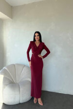 Kruvaze Yaka Toka Detaylı Özel Tasarım Elbise