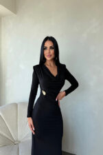– Uzun kollu tasarımı ile kış aylarında şıklığınızı korurken sıcak tutar.; – Regular silueti sayesinde rahat bir kullanım sunar ve vücut hatlarınıza uyum sağlar.; – Düz dokuma kumaşı, zarif ve sade bir görünüm kazandırırken dayanıklılığı arttırır.; – Astarsız yapısıyla hafif ve nefes alabilen bir yapıya sahiptir, cildinizle doğrudan temas eder.; – Degaje yaka detayı ile feminen çizgileri ön plana çıkarır ve sofistike bir hava katar.; – Orta kalınlıkta kumaşı, mevsim geçişlerinde ideal konforu sağlar.; – Kapamasız tasarımı ile modern ve minimalist bir stil oluşturur; kolay giyip çıkarmayı mümkün kılar.; – Kemer veya kuşak bulunmaması, elbisenin doğal hatlarını vurgular ve şık duruşunu pekiştirir.; – Tokalı detayları ile zarif bir dokunuş eklerken, gece şıklığınızı tamamlar.; – Cepsiz olması sayesinde minimalist tasarımından ödün vermeden pratiklik sunar.; – İç göstermeyen kumaşıyla rahatlıkla kullanabileceğiniz iç giyim seçeneği sunar.; – Yetişkin