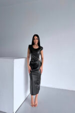 – Kayık yaka tasarımı ile zarif bir görünüm sunar ve dekolte bölgesini şık bir şekilde vurgular.; – Belden tokalı drapeli kesimi sayesinde vücut hatlarınıza uyum sağlar ve feminen bir siluet oluşturur.; – Kolsuz tasarımı yaz aylarında serinlik ve rahatlık sunarken, siyah rengiyle her zaman moda olan bir seçenek sunar.; – Suni deri kumaşı, dayanıklılığı ve şık görünümü ile dikkat çeker; orta kalınlıkta yapısıyla mevsim geçişlerinde de tercih edilebilir.; – Yetişkinler için ideal olan bu elbise, şık ve gece ortamları için uygundur; cepsiz ve kemersiz tasarımı minimalist bir stil yaratır.; – Standart boyu ve düz deseni ile sade ama etkileyici bir duruş sergiler; astarsız yapısıyla hafiflik hissi verir.; – İç göstermeyen özelliği sayesinde rahatlıkla kombin yapabilirsiniz; kapamasız yapısı ise pratik kullanım sağlar.; – TR menşeli ürün, yerel üretim destekleyerek sürdürülebilir moda tercihlerine katkıda bulunur.;