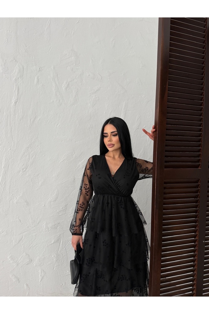 – Kruvaze yaka tasarımı ile zarif bir görünüm sunar ve feminen detayları ön plana çıkarır.; – Uzun kollu yapısı, kış aylarında şıklığınızı korurken sizi soğuktan da korur.; – Orta kalınlıkta şifon kumaşı, hem hafif hem de dayanıklı bir kullanım sağlar.; – Şık ve gece ortamları için idealdir; özel davetlerde ve etkinliklerde göz alıcı bir seçimdir.; – Baskısız düz deseniyle sade ve sofistike bir stil yaratır, farklı aksesuarlarla kolayca kombinlenebilir.; – Cepsiz tasarımı, elbisenin hatlarını bozmadan şıklığı tamamlar.; – Kutu içeriği olmadan gelen bu elbise, doğrudan kullanım için hazırdır.; – Sexy persona’ya hitap eden kesimiyle dikkat çekici bir duruş sergiler.; – Astarlı yapısı sayesinde iç göstermeyen konforlu bir kullanım sunar.; – Kemerli tasarımı belinizi vurgulayarak feminen bir siluet oluşturur.; – Şifon dokuma tipi, hafif ve akıcı bir görünüm kazandırırken, rahat hareket etme olanağı sağlar.; – Yetişkin kadınlar için uygun olan bu elbise, standart boyuyla her vücut tipine uyum sağlar.; – Türkiye’de üretilmiş olup, yerel üretim kalitesini yansıtır.; – Comfort kalıbı ile rahat bir kullanım sunarken şıklığınızdan ödün vermezsiniz.;