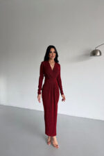 Kruvaze Yaka Simli Özel Tasarım Bordo Elbise