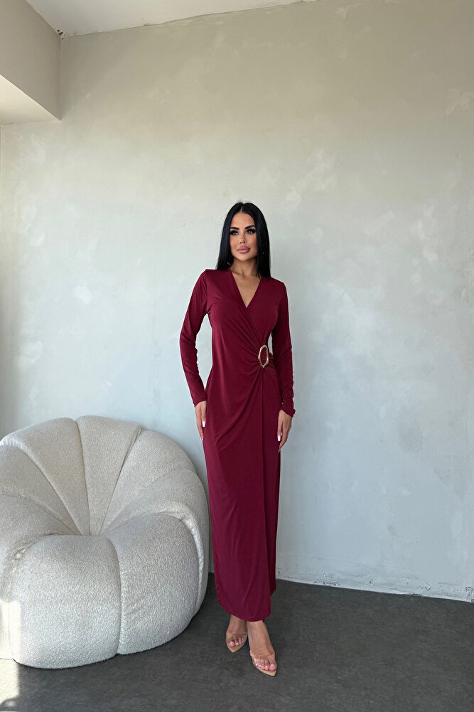 Kruvaze Yaka Toka Detaylı Özel Tasarım Elbise